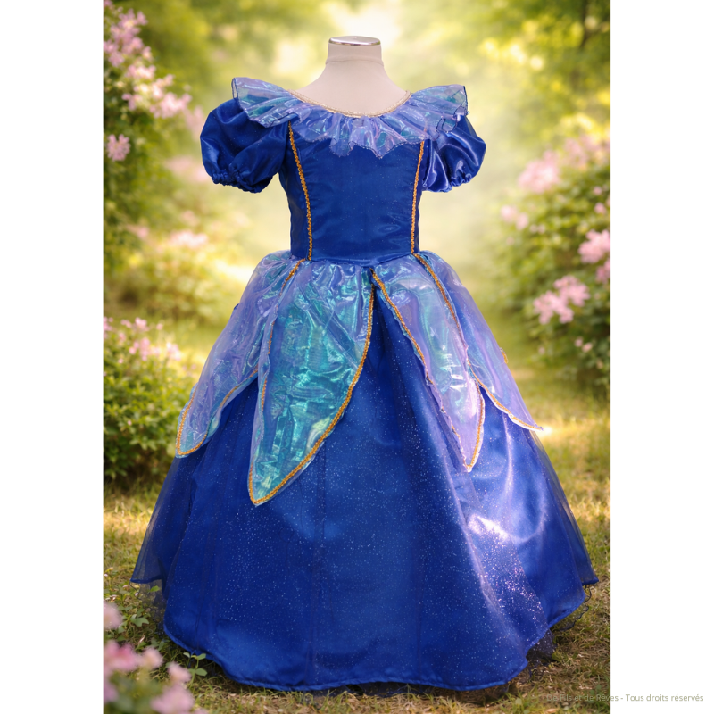 Cette somptueuse robe de princesse Astrea, bleu nuit de taille 6 ans pour fille, évoque la magie du ciel étoilé avec ses reflets irisés et ses détails dorés qui capte la lumière. Sa coupe princesse et superposition vaporeuse apporte du volume et de l'élégance. Son tulle bleu pailleté donne un effet féérique. Une création parfaite pour faire rêver les petites filles.